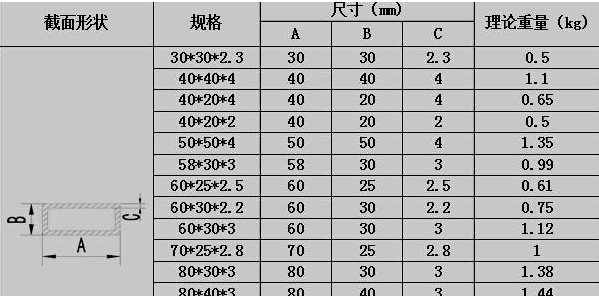 方管是指放行的鋼管管材,方管使用用途廣泛,被廣泛用于建筑、裝飾、機械等領域。對于方管采購人員來說,平常會接觸到最多的是關于方管的規格和價格。今天廠廠樂小編終點來說方管規格表怎么看?參數代表什么思,以下圖為例子。 首先,上圖是方管的截面,A代表方管的寬,B代表方管的高,C代表方管的厚度。那么我們通常提到比如:方管規格30*30*2.3就代表方管的寬是30,高是30,厚度是2.3。其次,還有方管長,方管的長度可根據采購的要求來截取。再次,方管理論重量是根據一定的公式:4*壁厚*(邊長-壁厚)*0.00785計算得到,這主要是因為平常方管稱重麻煩,人們通過不斷的計算所得到的公式,但多多少少還是會有點偏差。接著,不同廠家對于方管規格制造不一樣,有需要的規格要根據廠家提供的規格表來看,來看有沒有自己想要的規格。最后,不同國家對于方管也有不同標準,要根據使用國家來采購,不能再外國也根據中國的規格,那樣工程會出現很有的漏洞。 那么對于我們采購人員來說,了解了規格參數,怎么采購到優質方管呢? 第一、看表面,好的方管表面光滑,摸起來很舒適,而劣質方管外表經常有麻面現象,麻面是由于軋槽磨損嚴重引起鋼材表面不規則的凹凸不平的缺陷。第二、看材質,好的鋼材質量剛硬,劣質的容易刮傷,表面易產生裂紋。第三、看光澤,好的鋼管光澤艷麗,會反光,劣質方管無金屬光澤,呈淡紅色或其他。第四、累贅方管的橫截面呈橢圓形,原因是廠家為了節約材料,成品輥前二道的壓下量偏大。 |